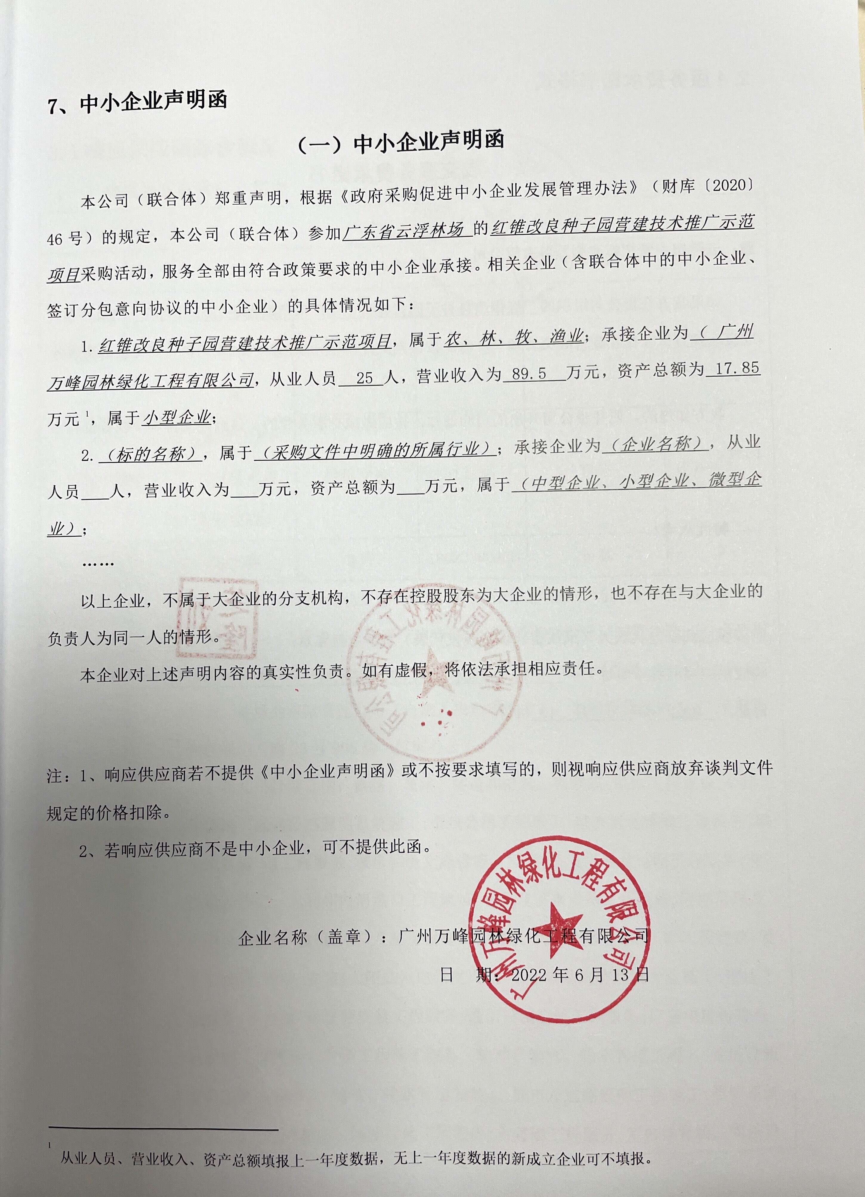 1、廣州萬峰園林綠化工程有限公司—中小企業(yè)聲明函