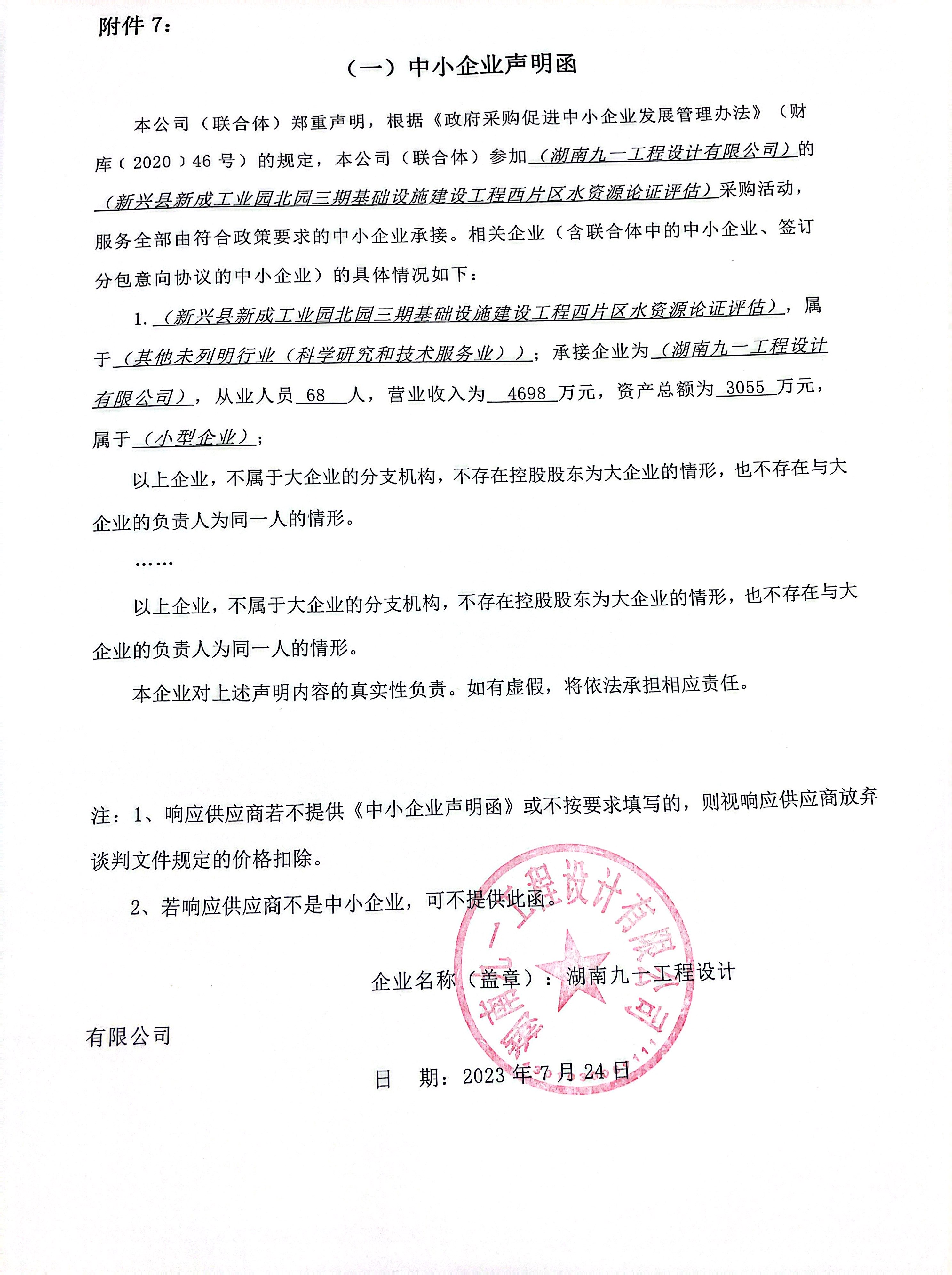 中小企業(yè)聲明函(湖南九一工程設(shè)計(jì)有限公司).jpg